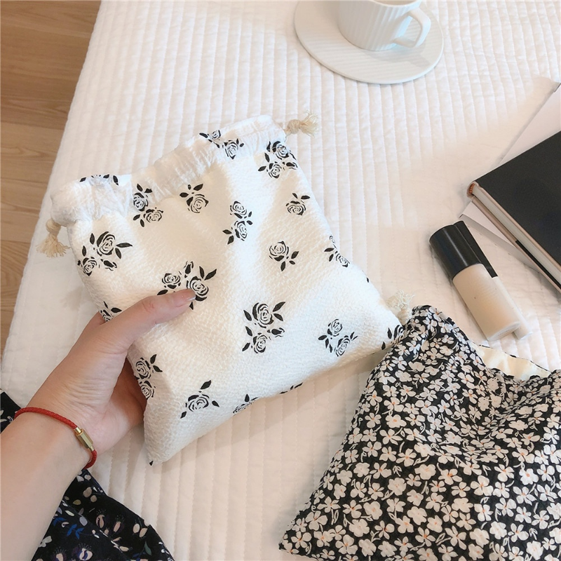 Vintage flower drawstring storage sundries travel cosmetic bag